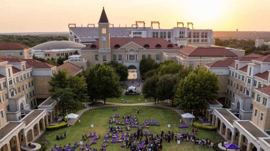 TCU is a private university in Fort Worth that focuses heavily on the student experience and personalized learning. The campus is compact, walkable, and consistently ranked as one of the most beautiful in the nation with its warm, buff-colored brick buildings. It has a very “boutique” feel where everything is high-quality and the students seem genuinely happy to be there, creating a warm and inclusive social scene.